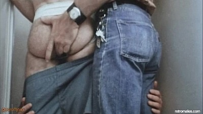 He keeps an eye open for anyone coming in the door, then quickly darts back to the pisser when he hears working stud Tom Sawyer enter. They eye each other's cocks then double-dick Mike's hungry mouth. Steve and Tom feel up each others' muscular butts and Tom fingers, then plows into the jogger's fuzzy ass. Four's company when Duff Paxton joins the blowbuddies, sticking his hard cock into Mike's throat while the other two fuck just outside the stall. Mike buries his insatiable mouth into Duff's smooth ass crack while he beats off. Duff milks a creamy load onto Mike's tongue and chin just before Mike checks his watch and smiles, ready to go back to an afternoon of office drudgery.