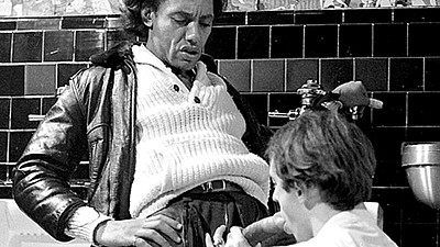 Lots of dudes are filling the men's room as the action continues. After one guy's monster cock is up, he shoves it into Malo's ass. A look at the film playing has Jayson MacBride snoozing and Jack Wagner enjoying the performance of "both" Big Bill Elds.