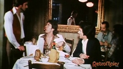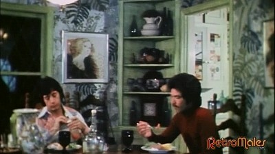 Next, Anthoni decides to explore public sex and goes to a porno theater. Here, he experiences his first threeway, with Scott Heith and shaggy-haired Tim Christy exploring oral sex, mutual masturbation and cum-eating. Meanwhile, a hot black-and-white movie with great dirty narration plays on the screen: two beefcakes (model Paul Strand and masseur Bob Perry) in jockstraps who get into foreplay, finger-fucking and humping ass after body worshipping one another with oil.