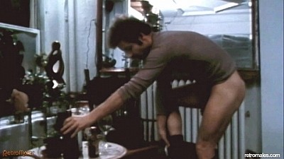 Jack returns and the men break into couples for sex. An excellent, very erotic, memorable, and slow scene has Jack and Roger on plastic, oiled and engaged in foreplay. They exchange blow jobs. All the while, Garry sucks the painter's uncut cock.