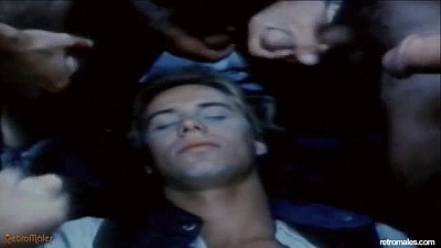 Finally all of Luke's acid-fueled visions coalesce and descend on him in a woodland orgy. He sees the earlier scenes in flashes, and lies down at sunset next to his tent. Reaching into his pants, he gives his worked-up cock a smooth wank, stroking from balls to head. Opening his eyes, there's a lean muscle stud jerking off just above his face, then another, then a third. A fourth joins in all enveloping Luke is the heat and scent of men's musky dicks. His face and chest get splattered with juicy loads and he lies back to close his eyes. A flash and Luke is back alone on his back wacking off. He cums and looks up into the trees of the empty forest.