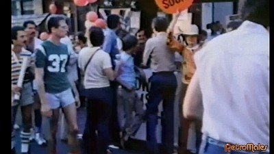 Wrangler, unaware of the grim fate he narrowly escaped, spends a leisurely afternoon enjoying the Christopher Street Fair. This gem of an addition (with Wrangler and Richards strutting about and embracing) captures this event in rich detail, from bands playing disco and rock classics, to drag performers, anti-Anita Bryant signage, affectionate couples, large crowds, and more. Yet another sensationalizing headline is zoomed in on as our happy couple wanders through the event, but Wrangler misses this clue, as well.