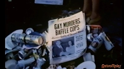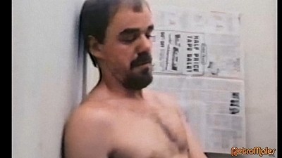 Our anti-hero can't resist his urges for long and strolls to the piers, where he picks up unsuspecting Giuseppe Welch. After necking there against a window, they find a cramped and dirty public john to fuck in. The two take turns kneeling to suck each other's cocks, with Welch being vigorously face-fucked while beating his meat, as Richards grasps handfuls of his hair, all to a soundtrack of grunts and ambient train sounds. As Richards gets close to orgasm, we see him clutching a jockstrap behind his back. He thrusts this around Welch's throat, violently strangling the blond man, who slumps lifeless to the floor.