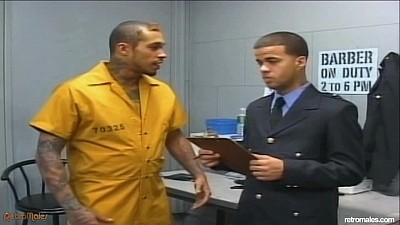 Inmate 70325 needs to get in, and the guard is the only one who has the power. Offering up his mouth, the prisoner gets on his knees and works that guard's cock like he means it. Both bust a nut before the end. Now, it's up to the jailer to get the inmate "ass-igned."