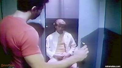 A bearded businessman (Steve Taylor) sucks Rick Faulkner's fattie through a glory hole and then pushes his fleshy keister up to the hole so Faulkner can fuck him through it. Faulkner sure does; he slams into the businessman and practically knocks down the wall separating them. When he's about to cum, the businessman backs off his dick and Faulkner shoots the most stunning load of goo - in slow motion, no less!