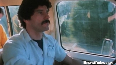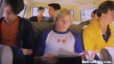 Heading out for a track meet, the guys load into a van. In the back, Don Ranger (Duff Paxton) makes himself comfy by grabbing Jamie's (Gavin Geoffrey) cock and sucking. Once the boy is hard, Don takes a seat and rides while Jamie lays his head back. At one point, Don even bends forward and asks another ***, "whatcha reading?" Close to cumming, Don puts his face back down and eats Jamie's cum.
