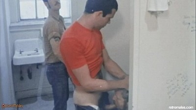 He keeps an eye open for anyone coming in the door, then quickly darts back to the pisser when he hears working stud Tom Sawyer enter. They eye each other's cocks then double-dick Mike's hungry mouth. Steve and Tom feel up each others' muscular butts and Tom fingers, then plows into the jogger's fuzzy ass. Four's company when Duff Paxton joins the blowbuddies, sticking his hard cock into Mike's throat while the other two fuck just outside the stall. Mike buries his insatiable mouth into Duff's smooth ass crack while he beats off. Duff milks a creamy load onto Mike's tongue and chin just before Mike checks his watch and smiles, ready to go back to an afternoon of office drudgery.